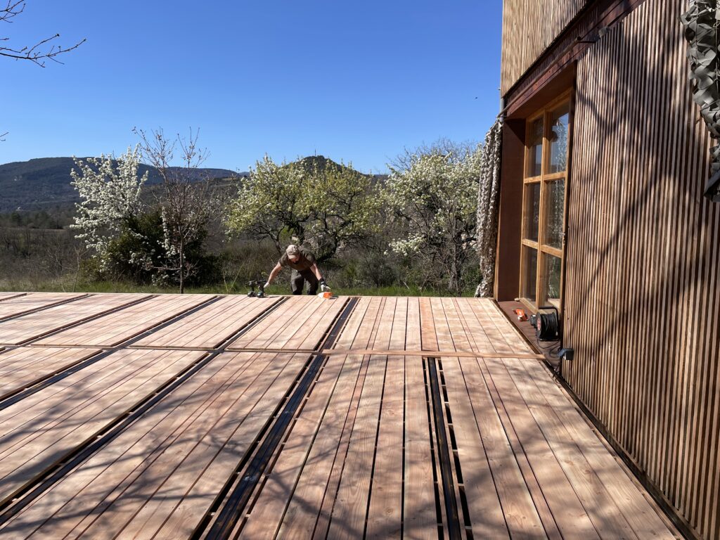 Conçu sur les cadres structurels en acier, les terrasses modulaires nous garantissent une durée de vie exceptionnelle. Contrairement aux terrasses classiques, seules les lames bois endommagées seront à changer dans le temps. La structure restera intacte dans le temps.